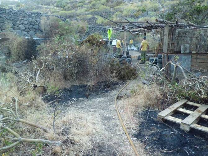 Efectivos de Bomberos La Palma y de la Consejería de Medio Ambiene tuvieron que intervenir la tarde del pasado viernes para sofocar un conato producido en el Barranco del Carmen, en Santa Cruz de La Palma.
