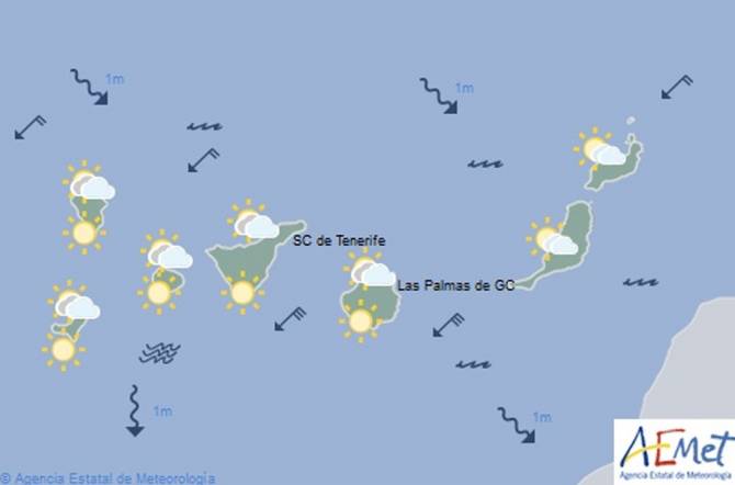 La previsión meteorológica para este lunes en La Palma apunta a que en el norte y nordeste, por debajo de 1.000 metros, los cielos estarán nubosos en general con apertura de algunos claros durante la tarde y con baja probabilidad de alguna llovizna ocasional principalmente a últimas horas.