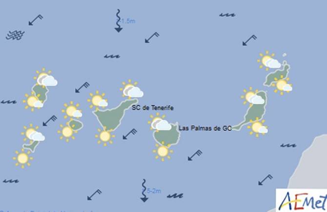 La previsión meteorológica para este martes en La Palma apunta a que en litorales norte y este por debajo de unos 1.000 metros, los cielos estarán nubosos, abriéndose amplios claros por la tarde. En el resto, poco nuboso a despejado.