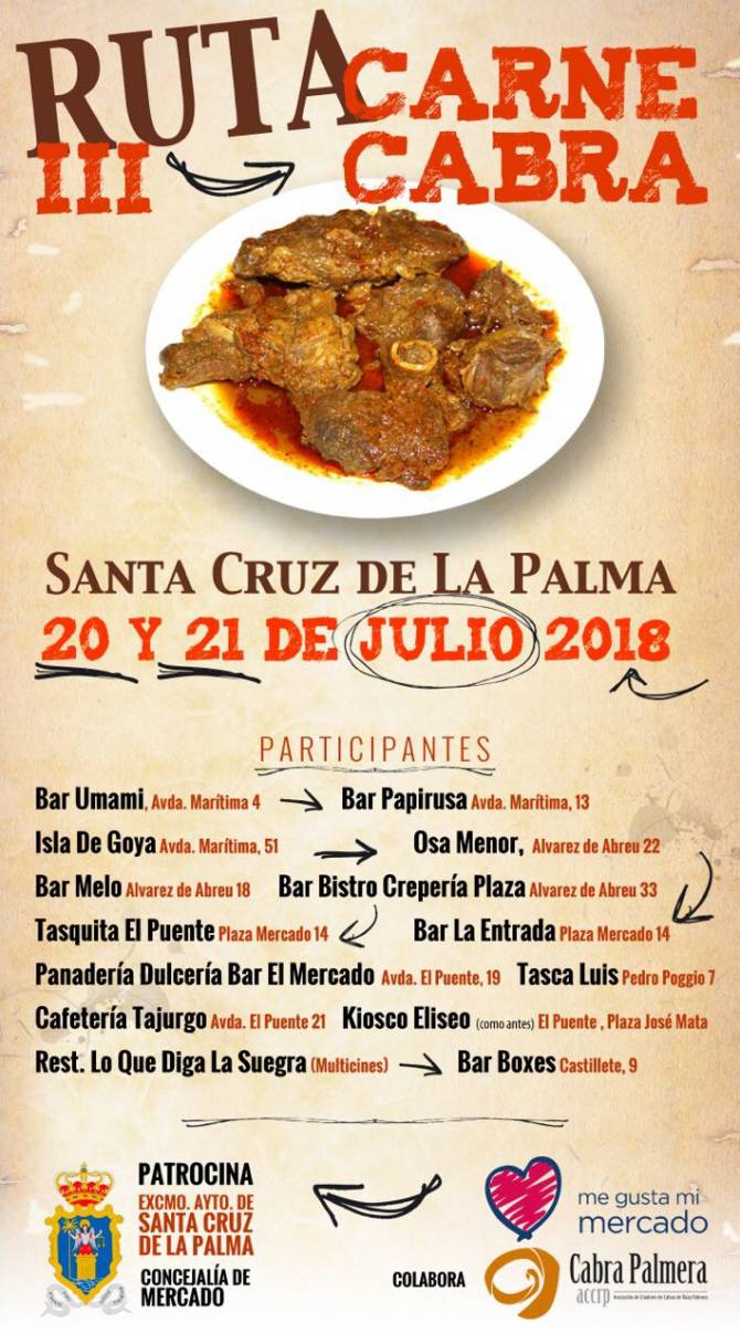 La Ruta de la Carne de Cabra se une a otras iniciativas llevadas a cabo en la capital palmera para dar a conocer y promocionar la riqueza gastronómica de la isla como un sector capaz de generar desarrollo económico. La Feria del Vino, la Feria de la Garimba o la Ruta del Gofio Escaldado forman parte de esta campaña.