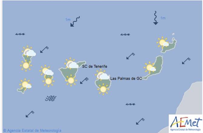En el resto, predominio de poco nuboso o despejado. No se descarta alguna llovizna aislada en medianías orientadas al norte.
