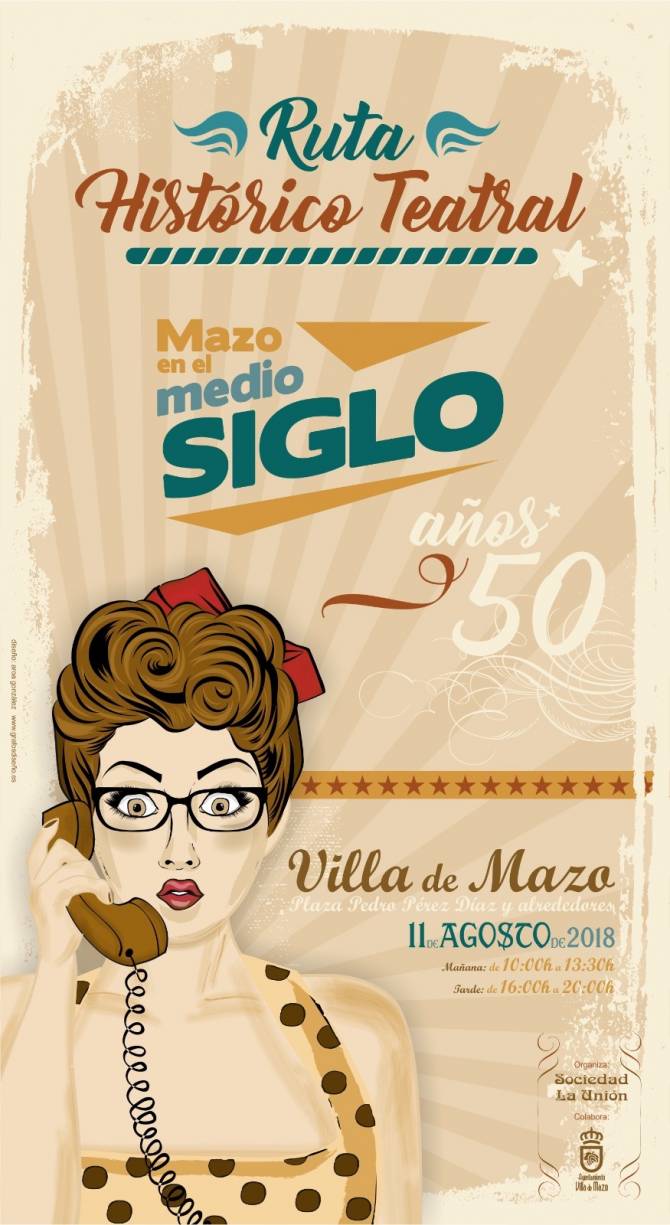 El próximo 11 de agosto de 2018 tendrá lugar en Villa de Mazo la nueva ruta histórico-teatral, titulada “Mazo en el medio siglo. Años 50” organizada por el Ayuntamiento de Villa de Mazo y la Sociedad La Unión, “en donde recrearemos un día en el municipio durante esa década”, señala el director del espectáculo, Óscar Jesús Fumero Méndez, en un comunicado.