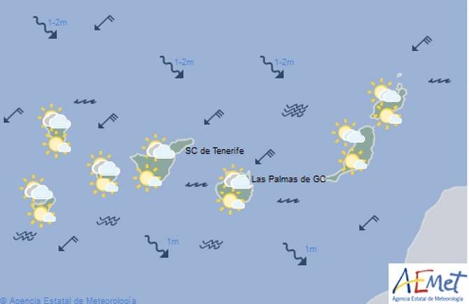 Temperaturas en ligero descenso, más acusado en medianías y zonas altas, situándose entre 26 y 21 grados centígrados.