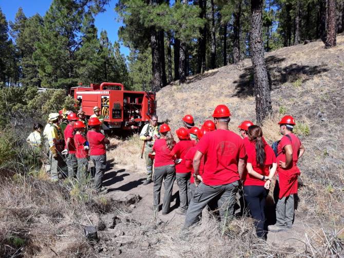 En la práctica conjunta los alumnos trabajadores han aprendido los diferentes tipos de combustibles que se encuentran en los incendios forestales en La Palma y sus posibles métodos de ataque. A su vez se les ha informado del modus operandi seguido por los operarios ante una alerta por un conato forestal y finalmente se procede a la construcción de una línea de defensa con las diferentes herramientas utilizadas en la isla para su apertura, seguida de un tendido de manguera con una de las autobombas con las que cuenta el dispositivo de extinción de incendios forestales para hacer frente al combate de las llamas.
