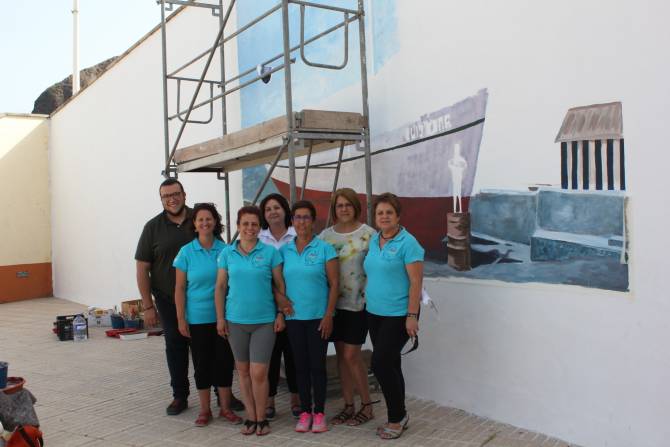 La obra está siendo realizada por un grupo de componentes de la Asociación Cultural Amigos Pintores de Las Breñas a partir de fotografías antiguas de la embarcación. La pintura mural se completará con un texto en recuerdo de la tragedia y los nombres de los náufragos.