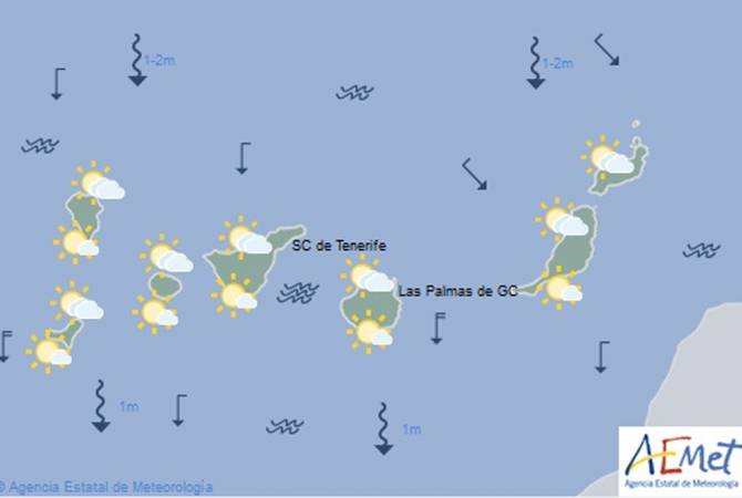 Temperaturas mínimas sin cambios y máximas en ligero ascenso en costas, siendo moderado en zonas de interior y medianías. situándose entre 26 y 22 grados centígrados.