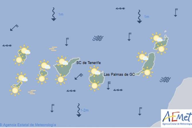Viento del nordeste, con intervalos de fuerte en vertientes sureste y noroeste, donde no se descartan rachas puntualmente muy fuertes. En medianías y zonas altas, viento del nordeste fuerte. Brisas en costas suroeste.