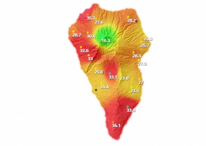 Otros puntos de la geografía insular que han tenido altas temperaturas han sido Fuencaliente o Villa de Mazo, donde también se han alcanzado los 35 grados. Otros puntos como Tijarafe, El Paso o Las Tricias han rondado los 33 grados centígrados.