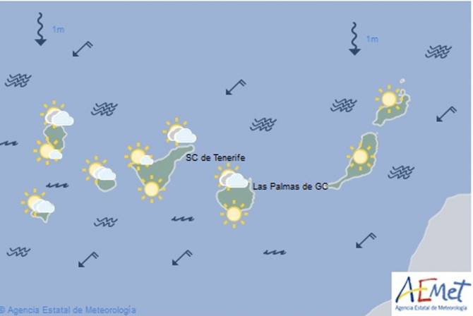 Viento en régimen de brisas en costas nordeste y suroeste.