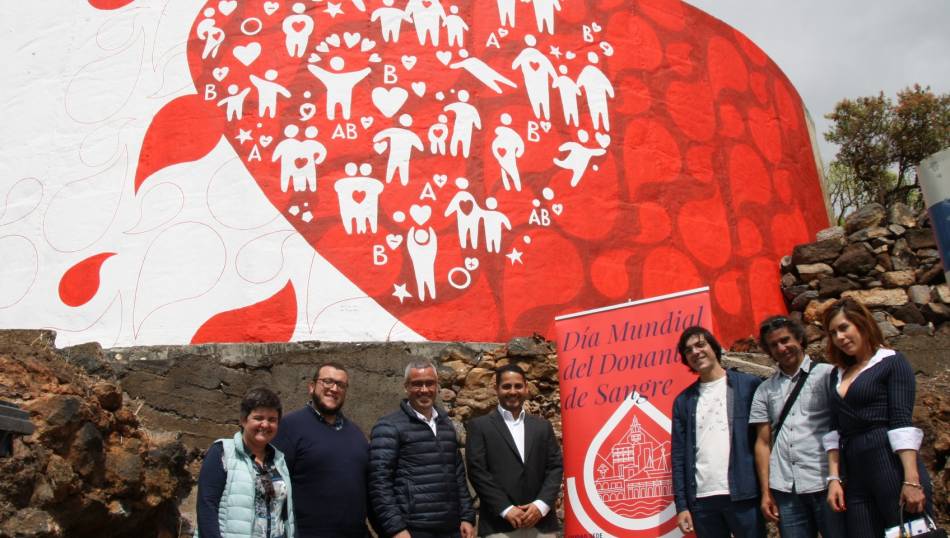 Santa Cruz de La Palma cuenta desde este miércoles con un mural urbano de gran formato que conmemora la designación de la ciudad como sede provincial del Día Mundial del Donante de Sangre 2018.   Ubicada en la pared de un antiguo estanque en desuso de la calle El Pilar, la obra ha sido presentada por el alcalde de Santa Cruz de La Palma, Sergio Matos, el concejal de Sanidad y Movimiento Vecinal, Juan José Neris, el presidente del Instituto Canario de Hemodonación y Hemoterapia (ICHH),...