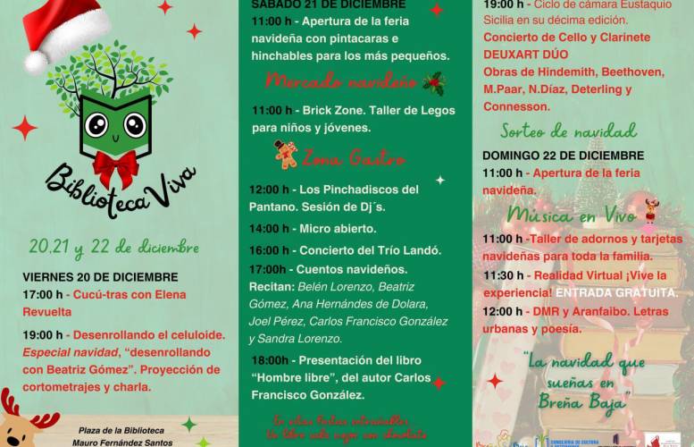 Del 20 al 22 de diciembre la Concejalía de Cultura del Ayuntamiento de Breña Baja ha elaborado un programa de actividades denominado “Biblioteca Viva” en la Biblioteca Pública Municipal de Breña Baja "Mauro Fernández Santos" (San Antonio). Bajo la coordinación y producción de Beatriz...