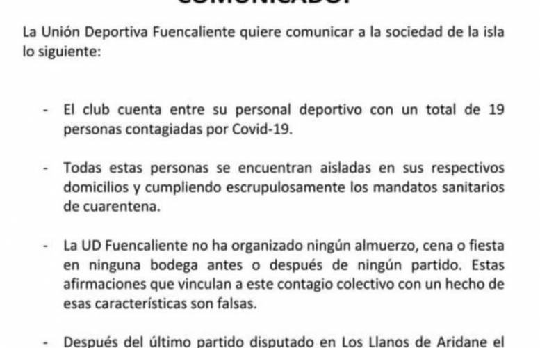 La UD Fuencaliente lanza un comunicado confirmando 19 contagiados dentro de su personal deportivo