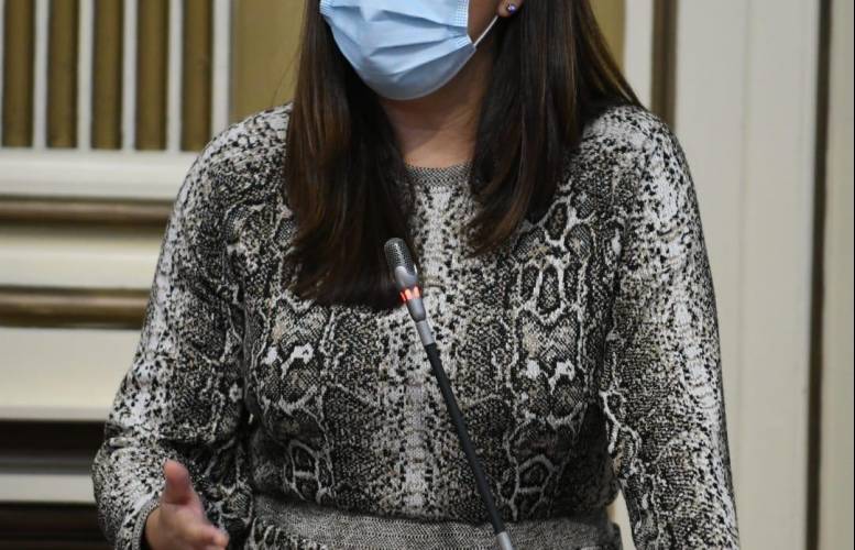La diputada del Grupo Parlamentario Socialista Matilde Fleitas defiende en el Pleno del Parlamento...