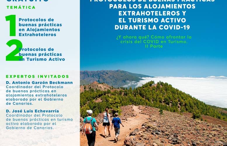 El objetivo de la jornada es presentar los protocolos de buenas prácticas para establecer medidas de actuación para la reincorporación a la actividad de los establecimientos alojativos extrahoteleros (apartamentos turísticos, casas rurales, albergues y viviendas vacacionales) y turismo activo dirigidas a la prevención de la infección por COVID-19 y a la respuesta ante la eventual aparición de nuevos casos de contagio. Con la reapertura del turismo es necesario definir unos procedimientos ...