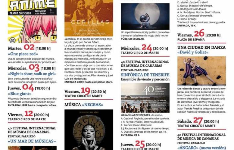 Cine, teatro, música y danza centran la cartelera cultural de Santa Cruz de La Palma este mes de...
