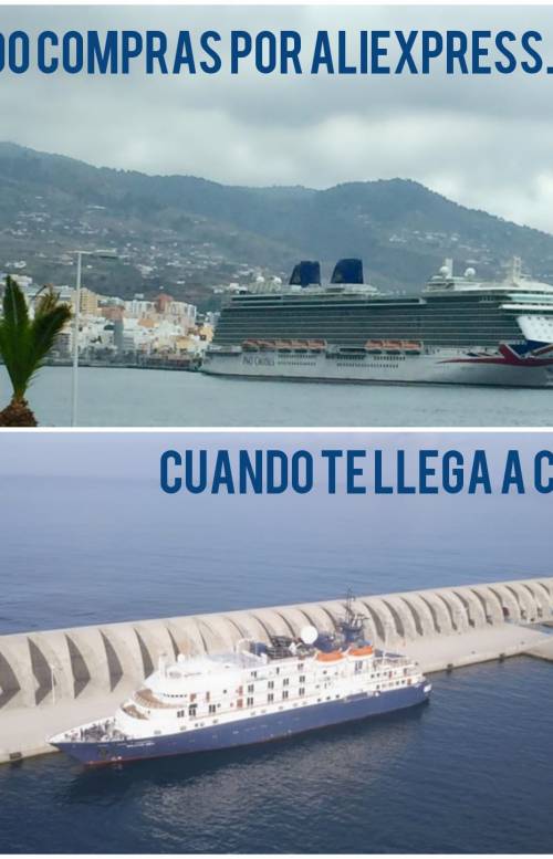 La llegada de un crucero al Puerto de Tazacorte también da para memes