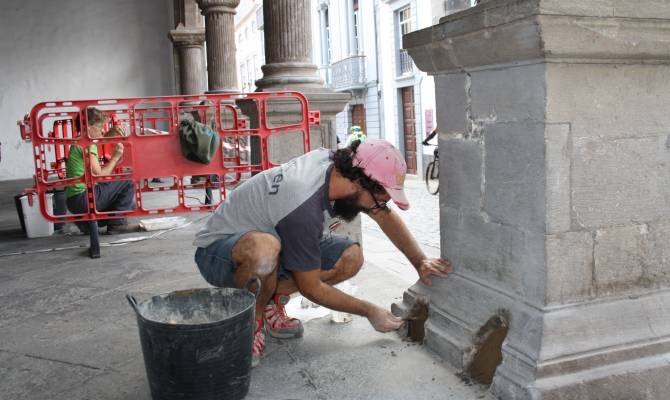 Realizan una intervención de conservación en las columnas de las Casas Consistoriales